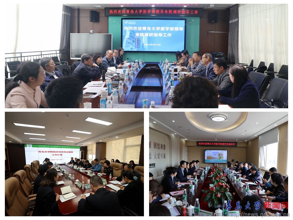 新聞網(wǎng)訊 為進(jìn)一步落實(shí)青島市人民政府和青島大學(xué)簽署的共建“青島大學(xué)青島醫(yī)學(xué)院”戰(zhàn)略合作協(xié)議內(nèi)容,4月12日-15日,由青島大學(xué)醫(yī)學(xué)發(fā)展戰(zhàn)略委員會(huì)副主任委員、首都醫(yī)科大學(xué)原校長(zhǎng)呂兆豐教授帶隊(duì)到附屬醫(yī)院、各市校共建直屬附屬醫(yī)院開展工作調(diào)研。校長(zhǎng)夏東偉出席工作調(diào)研會(huì)。青島市衛(wèi)生健康委科技教育與交流合作處處長(zhǎng)李兵,醫(yī)學(xué)部黨政領(lǐng)導(dǎo)班子成員,青島大學(xué)醫(yī)學(xué)發(fā)展戰(zhàn)略委員會(huì)執(zhí)行秘書長(zhǎng)、營養(yǎng)與健康研究院院長(zhǎng)馬愛國等一同參加調(diào)研活動(dòng)。