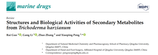 新聞網(wǎng)訊近日,我校藥學(xué)院2019級(jí)本科生郭蕊在國(guó)際期刊Marine Drugs(海洋藥物,影響因子:6.085,JCR大類醫(yī)學(xué)2區(qū))發(fā)表題為“Structures and Biological Activities of Secondary Metabolites fromTrichoderma harzianum”(木霉屬哈茨木霉次生代謝產(chǎn)物的結(jié)構(gòu)和生物活性)的綜述性論文(DOI:10.3390/md20110701)。青島大學(xué)藥學(xué)院為該論文的第一單位和通訊單位,郭蕊為第一作者,彭曉娉副教授為通訊作者。該項(xiàng)研究得到了國(guó)家自然科學(xué)基金等項(xiàng)目的資助。