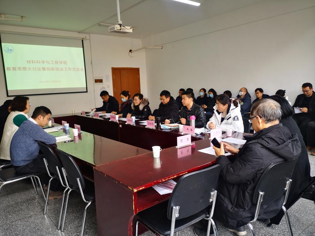 新聞網訊 為加強學院一流本科專業建設,推動創新創業工作順利開展,全面提高人才培養質量,11月30日下午,材料科學與工程學院在科技園D座會議室組織召開了教育思想大討論暨創新創業工作交流會。會議特別邀請了創新創業學院常務副院長王海榮一行出席。石墨烯應用技術創新研究院院長劉敬權、材料科學與工程學院黨委副書記曹俊、副院長李洪亮、黃林軍、教學委員會委員、學院督學、系主任、教研室主任、教科辦和創新創業骨干教師參會。會議由材料科學與工程學院院長隋坤艷主持。