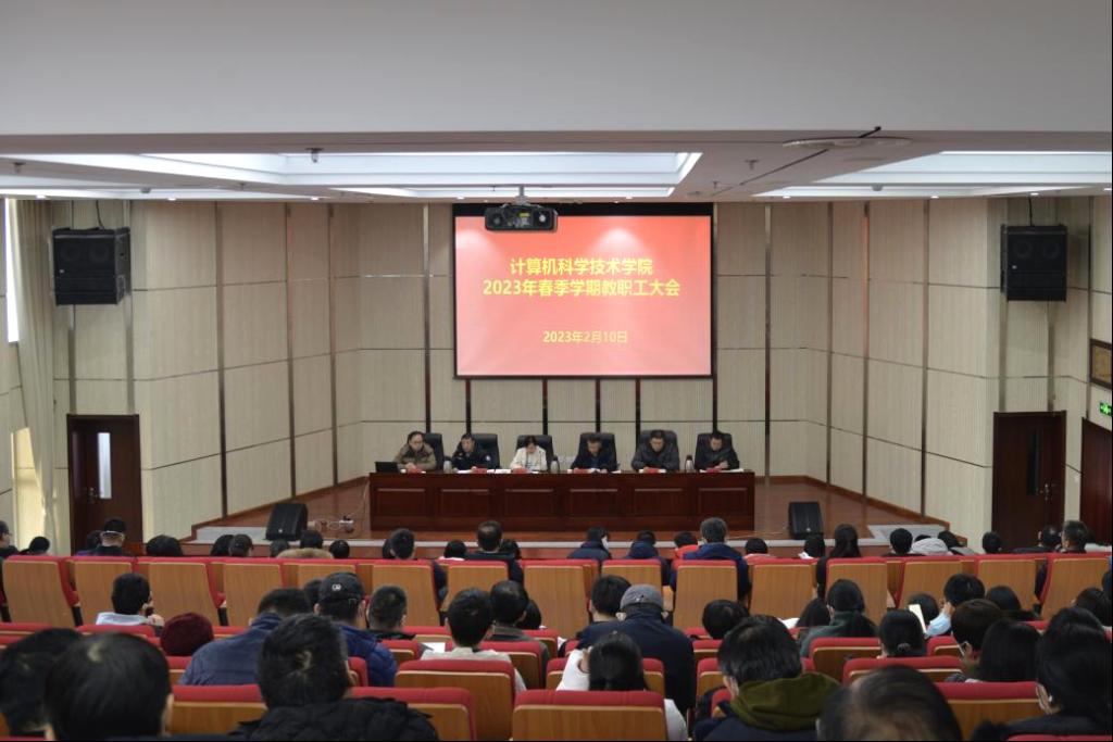 新聞網訊 2月10日上午,計算機科學技術學院在會議中心305會議室召開2023年春季學期教職工大會,傳達學校相關會議精神,部署學院2023年及近期主要工作。院長郭振波,院黨委副書記周鵬,副院長于佳、周強、王國棟及學院全體教職工參加會議。會議由院黨委書記潘秋鴻主持。