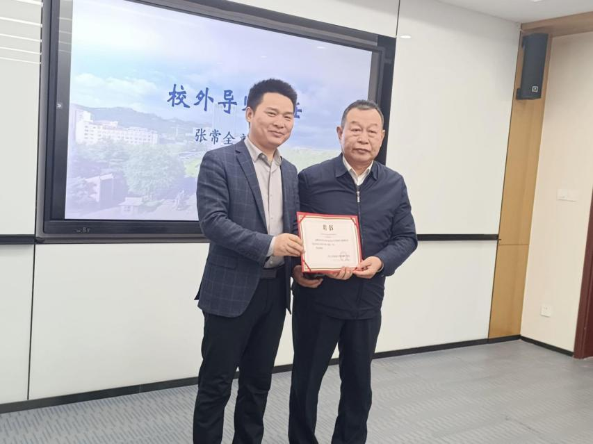 天泰集團為獲得2023年“天泰獎學金”的同學頒發(fā)獎金和證書。頒發(fā)儀式后,劉善東為校外物業(yè)總經理張常全頒發(fā)導師聘書。