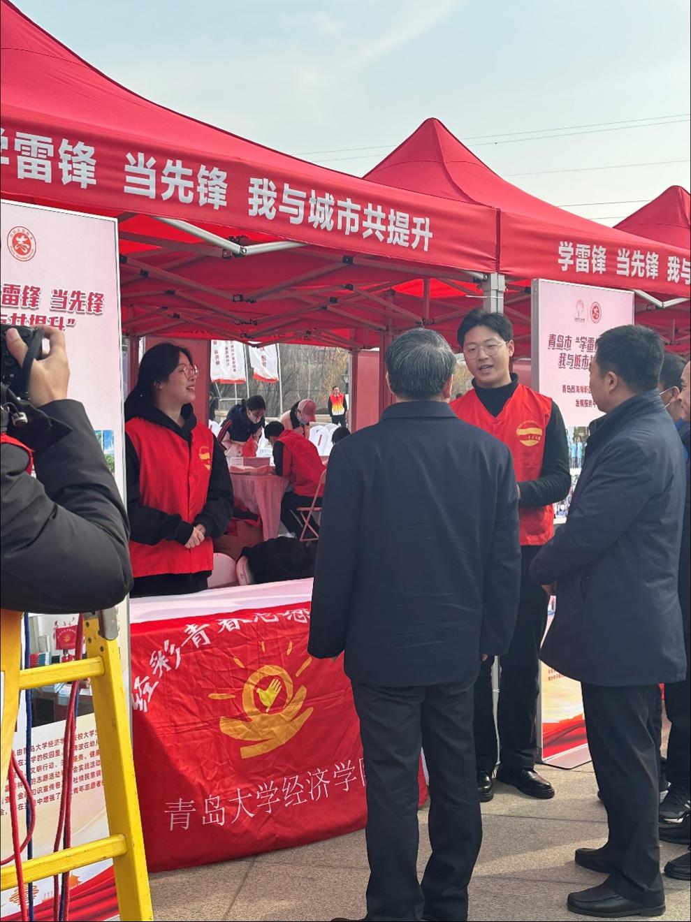 新聞網訊 3月3日上午,經濟學院經彩青春服務隊由學院黨委副書記于文潔以及學院輔導員帶隊,赴青島市志愿者廣場參與青島市“學雷鋒,當先鋒,我與城市共提升”主題活動啟動儀式。32名隊員參與會務志愿服務以及志愿大集風采展示。