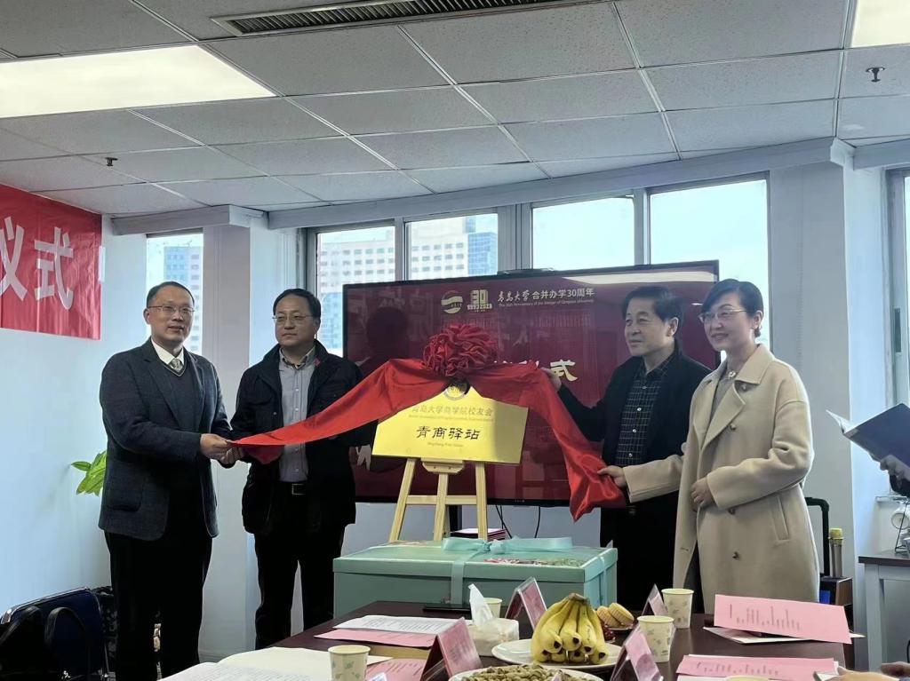 儀式上雙方共同為青商驛站揭牌,商學院首個線下校友驛站正式建成。