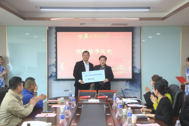 新聞網(wǎng)訊 3月30日下午,“青島大學(xué)商學(xué)院閔恒教育基金”捐贈(zèng)儀式在金家?guī)X校區(qū)商學(xué)院辦公樓310會(huì)議室舉行。閔恒集團(tuán)捐贈(zèng)十萬元,設(shè)立“青島大學(xué)商學(xué)院閔恒教育基金”,助力學(xué)院發(fā)展,助推學(xué)生成長(zhǎng)成才,與學(xué)院攜手為建設(shè)教育強(qiáng)國(guó)貢獻(xiàn)力量。閔恒集團(tuán)董事長(zhǎng)劉偉,商學(xué)院黨委書記王功勇,院長(zhǎng)王慶金,集團(tuán)總經(jīng)理馮志媛及學(xué)院領(lǐng)導(dǎo)班子成員、集團(tuán)成員,各相關(guān)部門負(fù)責(zé)人,各支部書記以及學(xué)生代表40余人出席捐贈(zèng)儀式。儀式由商學(xué)院黨委副書記尼梅頡主持。