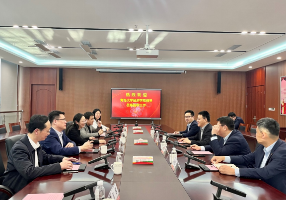 張守珩一行還實(shí)地考察了濟(jì)南農(nóng)商銀行,深入了解其事業(yè)發(fā)展?fàn)顩r和崗位需求情況等。座談會(huì)上,經(jīng)濟(jì)學(xué)院95級(jí)校友、山東省農(nóng)信聯(lián)社黨委委員、副主任、濟(jì)南農(nóng)商銀行黨委書(shū)記、董事長(zhǎng)董興磊對(duì)學(xué)院領(lǐng)導(dǎo)的到來(lái)致以誠(chéng)摯歡迎,表示濟(jì)南農(nóng)商銀行將充分借助青島大學(xué)經(jīng)濟(jì)學(xué)院優(yōu)勢(shì)資源,積極推動(dòng)各領(lǐng)域合作發(fā)展。雙方將互設(shè)就業(yè)實(shí)習(xí)、游學(xué)培訓(xùn)基地,合作開(kāi)展科創(chuàng)金融、金融支持鄉(xiāng)村振興等領(lǐng)域的課題研究。濟(jì)南農(nóng)商銀行2023年度首期員工游學(xué)培訓(xùn)班將于近期在青島大學(xué)經(jīng)濟(jì)學(xué)院舉辦。