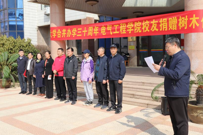 新聞網(wǎng)訊 4月9日上午,慶祝青島大學(xué)合并辦學(xué)30周年電氣工程學(xué)院校友捐贈(zèng)樹木儀式在師范學(xué)院德潤(rùn)樓前舉行。學(xué)校合作發(fā)展處(校友工作辦公室)處長(zhǎng)張燕,后勤處黨委書記王靜,1987級(jí)電氣校友代表徐龍飛、徐東、李迅、張修建、劉萍等參加捐贈(zèng)儀式,捐贈(zèng)儀式由學(xué)院院長(zhǎng)張智晟主持。