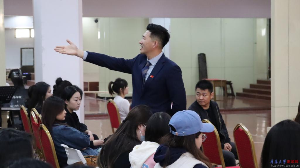 新聞網訊 為加強學校與校友的聯系,助力學院學生高質量就業,4月10日,音樂學院2007級校友、青島寶青文化運營公司總經理趙青一行受邀來訪音樂學院,并為全體本科畢業生做了“揚就業之帆 啟夢想之航 創陽光事業 展青春風采”的專題講座。音樂學院黨委副書記孫建華,團委書記、畢業生輔導員溫麗參加活動。