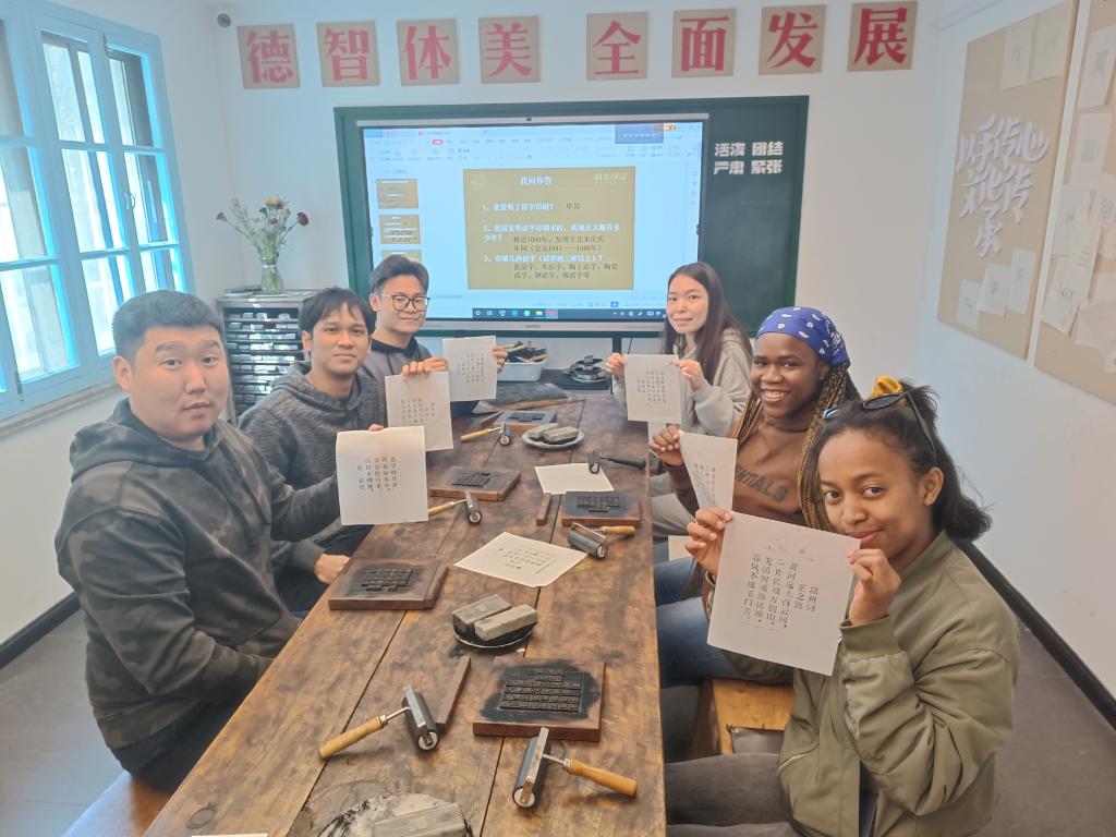 新聞網訊 4月13日,在國際中文日即將到來之際,我校來自蒙古、越南、俄羅斯、尼日利亞、馬達加斯加和泰國的6名孔子學院獎學金留學生來到青島時光印記活字印刷博物館開展研學活動。本次活動由中共青島市市南區委宣傳部和市南區文化和旅游局主辦,由青島新聞網和青島城市外宣傳網承辦,旨在幫助在青留學生了解活字印刷的歷史、發展,探尋漢字之美,領略印刷的魅力,體驗非遺文化。