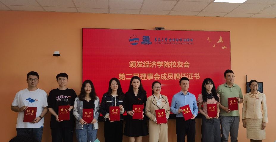 院黨委副書記、理事會(huì)秘書長于文潔作籌備工作報(bào)告,副院長陳東景宣讀經(jīng)濟(jì)學(xué)院第二屆校友理事會(huì)成員(建議)名單,副院長呂學(xué)梁帶領(lǐng)集體審議、通過了《青島大學(xué)經(jīng)濟(jì)學(xué)院校友會(huì)章程(修訂)》,校友代表于匯洋宣讀《經(jīng)濟(jì)學(xué)院發(fā)展基金捐贈(zèng)倡議書》,代表經(jīng)濟(jì)學(xué)院校友理事會(huì)向歷屆校友發(fā)出倡議,歡迎各位校友本著自愿、互惠的原則,積極參與經(jīng)濟(jì)學(xué)院發(fā)展基金捐贈(zèng)活動(dòng),促進(jìn)學(xué)院發(fā)展、助力學(xué)生成長,共筑經(jīng)濟(jì)學(xué)院美好明天。