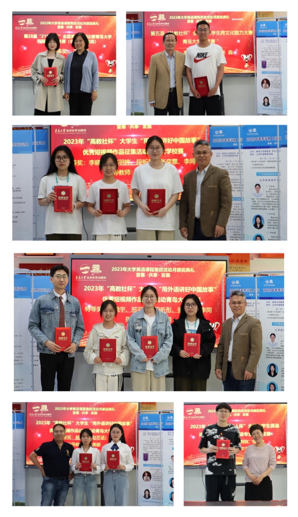 國林祥對本期大學英語課程思政活動月進行了總結,充分肯定活動月各項活動圓滿成功、成果豐碩,為學校合并辦學三十周年獻上了一份厚禮。并熱烈祝賀獲得各項表彰的老師和同學,向積極參與活動組織、志愿服務的老師和同學表示感謝。