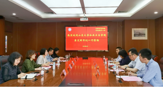 新聞網(wǎng)訊 近日,為深入學(xué)習(xí)貫徹習(xí)近平總書記關(guān)于調(diào)查研究的重要論述和黨中央《關(guān)于在全黨大興調(diào)查研究的工作方案》精神,山東大學(xué)公共衛(wèi)生學(xué)院黨委書記姜文麗一行4人到我校公共衛(wèi)生學(xué)院開展主題教育調(diào)研交流。我校公共衛(wèi)生學(xué)院黨政領(lǐng)導(dǎo)班子成員共同參加交流座談。