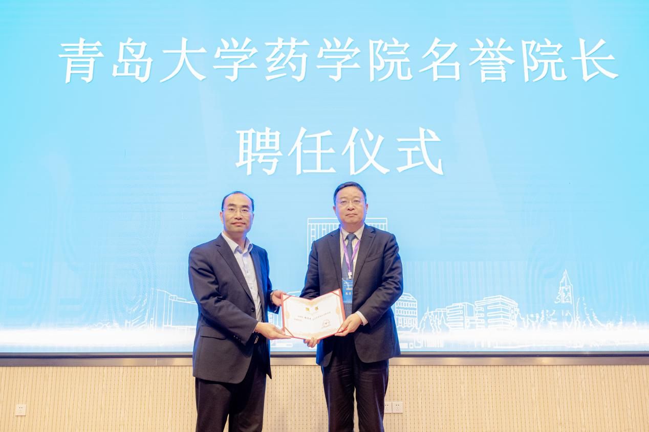 學術報告前舉行聘任儀式,孔偉金為魯南制藥集團黨委書記、董事長、總經理張貴民頒發青島大學藥學院名譽院長聘書。張貴民感謝學校給予他珍貴的榮譽,表示將一如既往鼎力支持青大醫學教育事業發展。出席論壇的還有中國疾控中心艾滋病首席專家、昌平國家實驗室領銜科學家邵一鳴研,軍事醫學科學院抗毒藥物與毒理學國家重點實驗室主任張永祥,上海交通大學醫學院附屬第九人民醫院二級教授、原上海市口腔醫學研究所所長陳萬濤,國家納米科學中心人事處長聶廣軍,中山大學腫瘤防治中心、國家優青獲得者鞠懷強論壇邀請五位國內醫學科研領域的杰出校友和知名專家,分別結合各自的研究領域、課題方向和最新研究成果做學術報告。