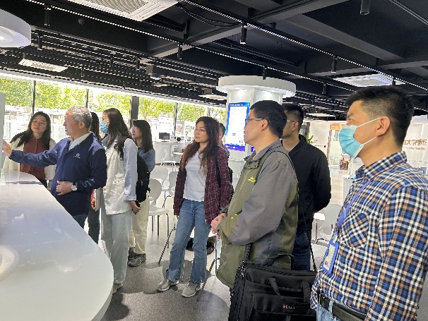 參觀學(xué)習(xí)環(huán)節(jié),劉小青向到訪(fǎng)的學(xué)院老師詳細(xì)介紹了產(chǎn)業(yè)技術(shù)研究院的定位和發(fā)展目標(biāo),并帶領(lǐng)大家參觀了產(chǎn)研院的各個(gè)功能板塊,展示了目前在產(chǎn)研院推介的部分項(xiàng)目。