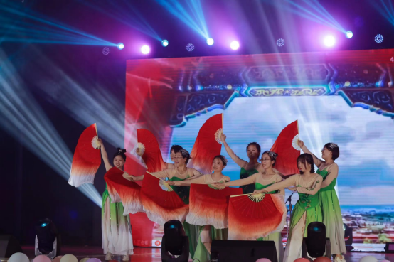 晚會上,學院領導老師們的寄語視頻傳達他們對畢業學子的期許與祝愿。晚會分為“振振青衿,裊裊佳音”“乘風破浪,擊水中流”“驪歌未央,再續華章”三個篇章。晚會表演形式多樣,歌曲、小品、相聲、舞蹈等節目精彩紛呈,生動地展示出學院學子的青春活力,還有師生共同演繹的扇子舞,引起場上掌聲不斷,高潮迭起。