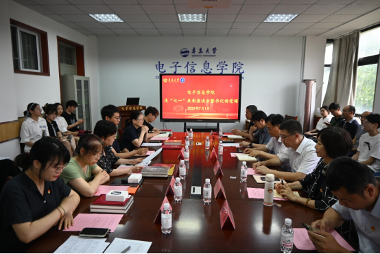 新聞網訊 6月29日下午,電子信息學院在誠思樓407會議室召開慶“七一”表彰座談會暨書記講黨課活動,校主題教育督導組組長李升學出席會議,院系班子成員、教師黨員、學生黨員代表以及受表彰全體師生參會。
