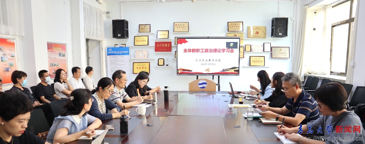 新聞網訊 9月1日上午,公共外語教育學院召開全體教職工政治理論學習會暨學期初工作會議。院黨委書記劉海榮主持會議,全院教職工線上線下參會。