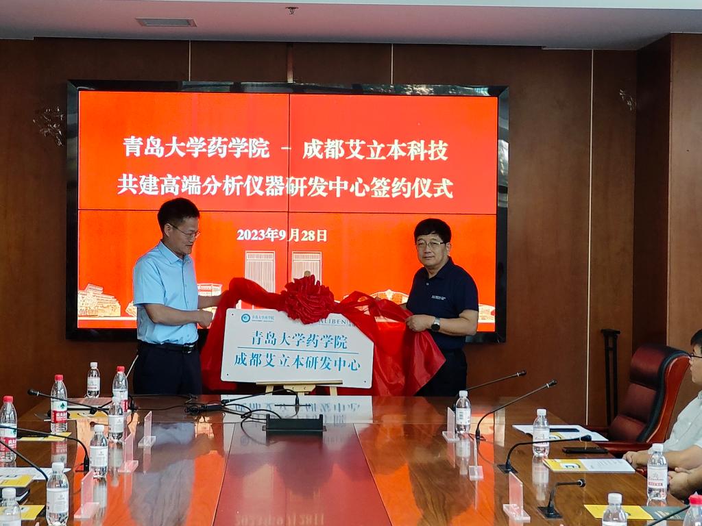 新聞網訊 近日,青島大學藥學院與成都艾立本科技有限公司共建高端分析儀器研發中心的簽約儀式在浩園醫學教育綜合樓舉行。艾立本科技有限公司董事長段憶翔、藥學院黨委書記李在寶、院長張漢霆以及藥學院教師代表參加儀式。