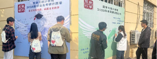 學(xué)院為“玉蘭朋輩領(lǐng)航員”舉行聘任儀式,并為考研同學(xué)發(fā)放考研加油包,會后,同學(xué)們紛紛在考研許愿墻與學(xué)風(fēng)建設(shè)倡議書上寫下了美好的愿景。