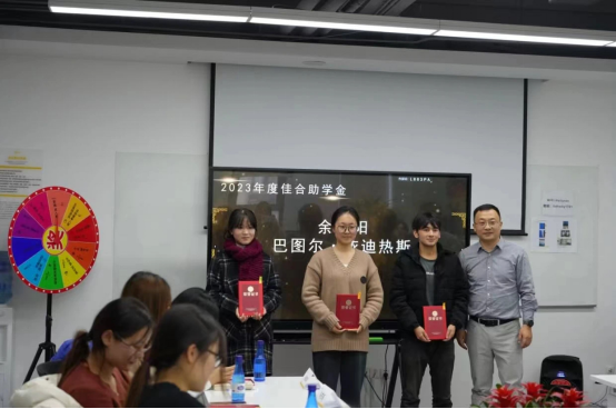 座談會前,學院一行參觀了企業各部門、榮譽文化長廊等,通過近距離接觸企業環境,深入了解了企業特色,感受到了濃厚的文化氛圍和舒適的工作環境。公司還舉行了2023年度青島大學佳合永潤獎助學金頒發儀式,共有25名同學領取了獎助學金以及榮譽證書。