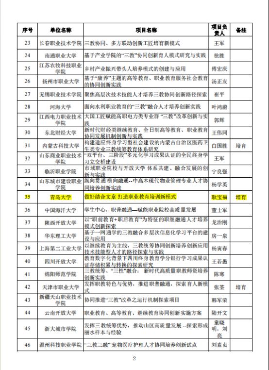 經評議,有100項學歷繼續教育教學改革創新任務、100項非學歷教育改革創新任務、50項探索三教統籌協同創新路徑入圍培育建設名單(其中含培育任務21個)。我校繼續教育學院申報的《做好結合文章 打造職業教育培訓新模式》入圍探索三教統籌協同創新路徑培育任務名單。