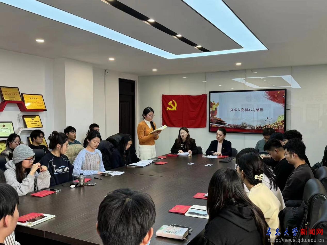 活動中,全體黨員重溫入黨誓詞。院黨委副書記孫竹媛為新加入黨組織的黨員贈送政治生日賀卡,各位黨員也莊重寫下自己的政治生日愿望并依次分享入黨初心以及感悟,全體黨員集體學(xué)習(xí)了習(xí)近平總書記依法治國重要講話精神并分享了學(xué)習(xí)體會。