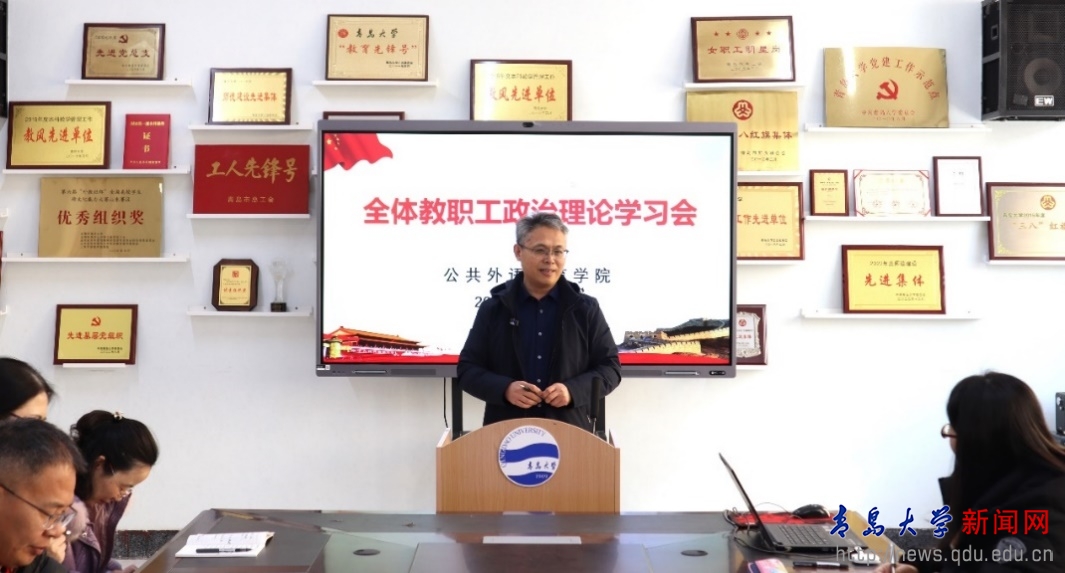 會議集體學習了習近平《在二0二四年春節團拜會上的講話》。國林祥傳達了校黨委書記胡金焱在中共青島大學第三屆委員會第十二次全體(擴大)會議暨2024年春季學期中層干部研討班上的主旨報告精神,并結合學校2024年重點工作交流了學院的工作思路。