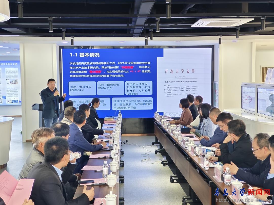 會前,全體與會人員前往青島大學產業(yè)技術研究院參觀,并和產研院的同事們進行友好交流。產研院執(zhí)行院長鮑文勝從歷史發(fā)展、制度建設、轉化平臺和工作開展情況等方面簡要介紹產業(yè)技術研究院的基本情況。雙方就深入開展科技成果轉化和社會服務工作達成廣泛共識,并探討進一步加強合作的具體方式。